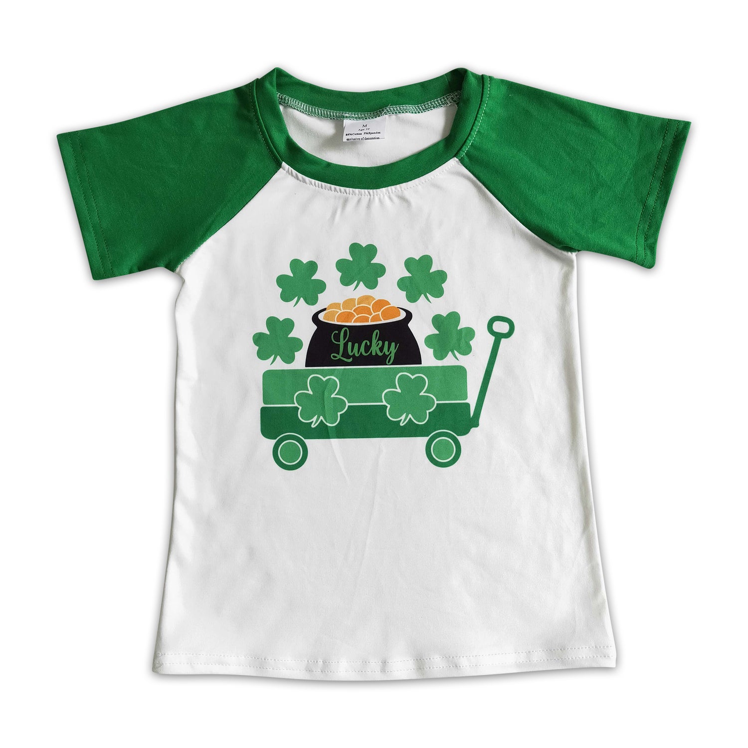 Lucky clover print green short sleeve boy st patrick day's shirt