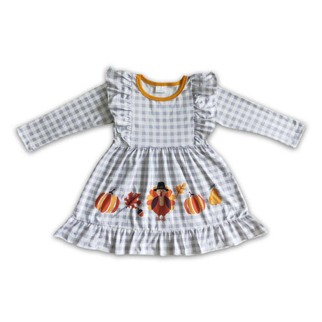 $900Unit price /UnavailableTurkey pumpkin grey plaid girls Thanksgiving dress