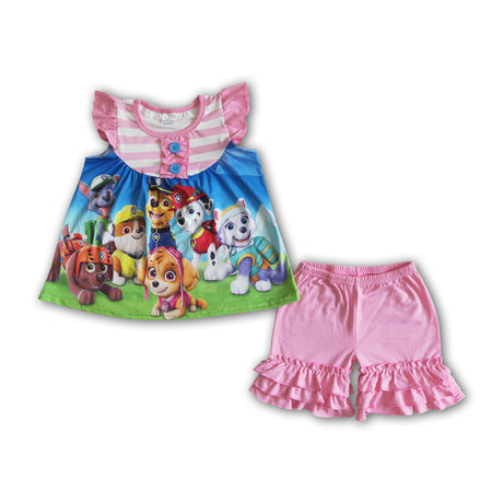 $1000Unit price /UnavailableFlutter sleeve cute dog print shirt pink shorts girls summer outfits