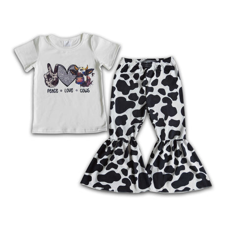 $1050Unit price /UnavailablePeace love cows white shirt bell bottom pants girls children outfits