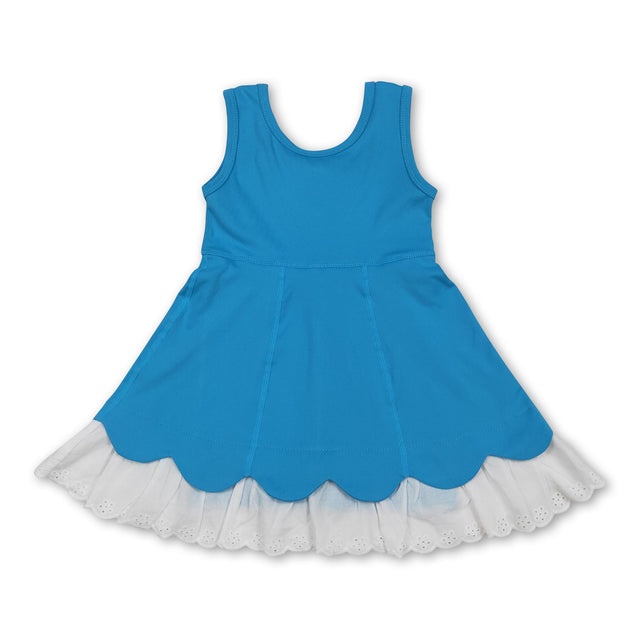 Blue sleeveless lace ruffle kids girls athletic dresses
