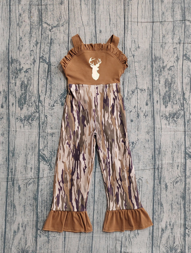 Deer embroidery brown ruffle camo kids girls jumpsuit