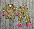 Leopard green face fur adult women Christmas button down pajamas