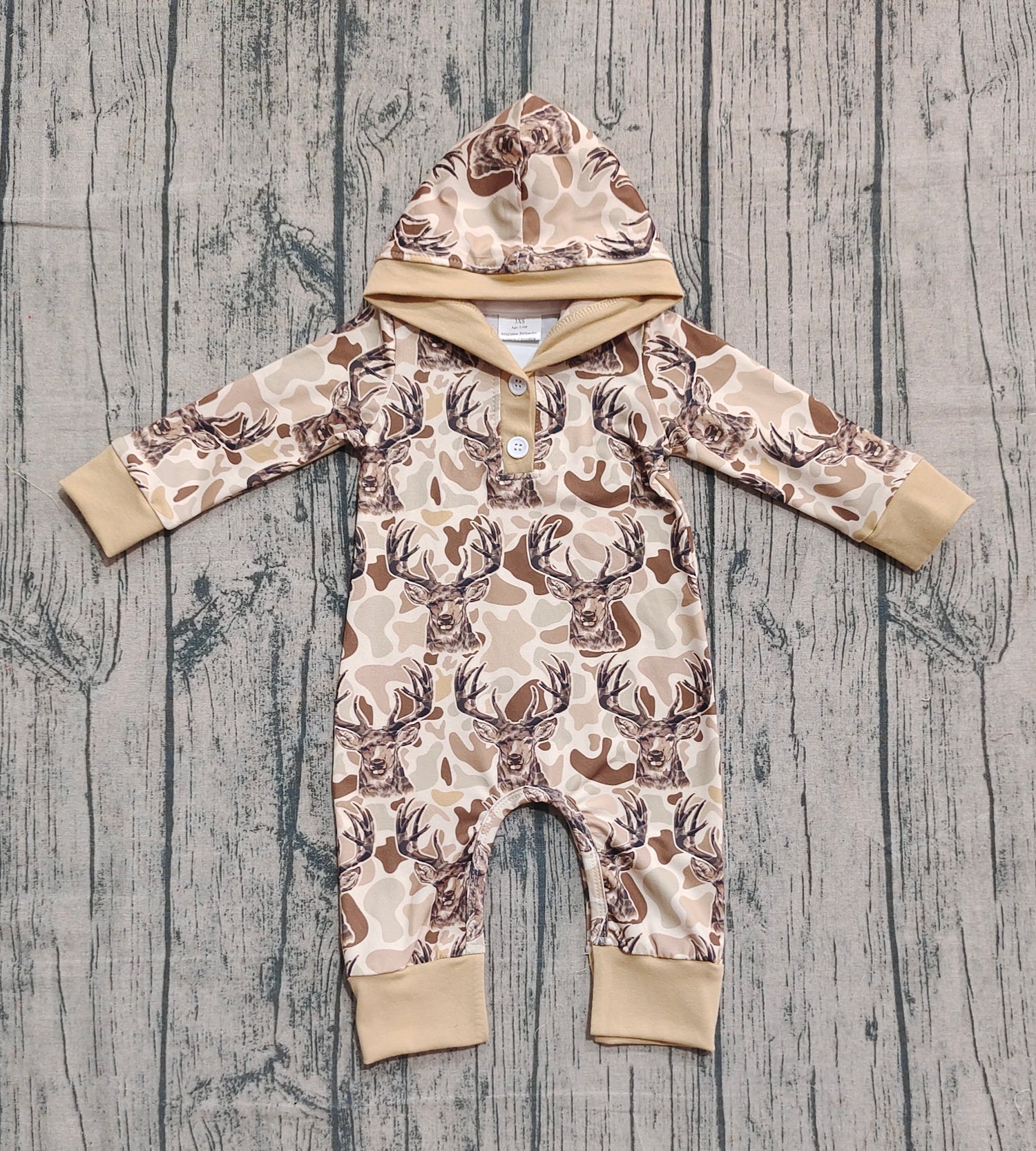 Long sleeves camo deer hunting baby hooded romper