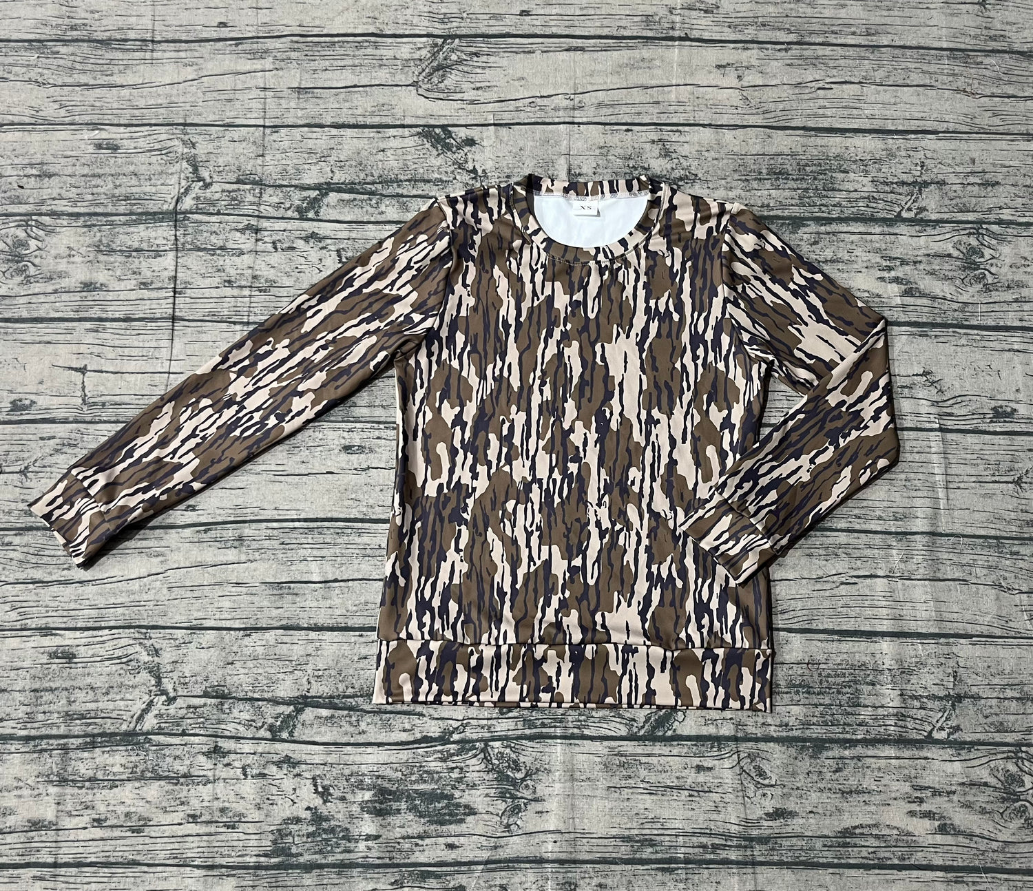 Long sleeves camo hunting adult women shirt - XS is backordered and will ship as soon as it is back in stock.