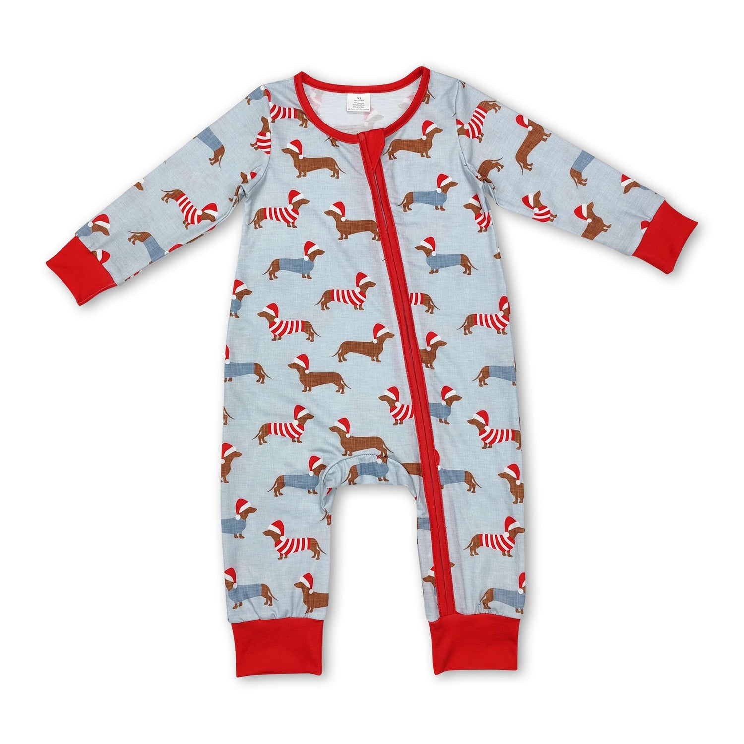 Long sleeves dog baby boy Christmas zipper romper - 0-3M is backordered and will ship as soon as it is back in stock.