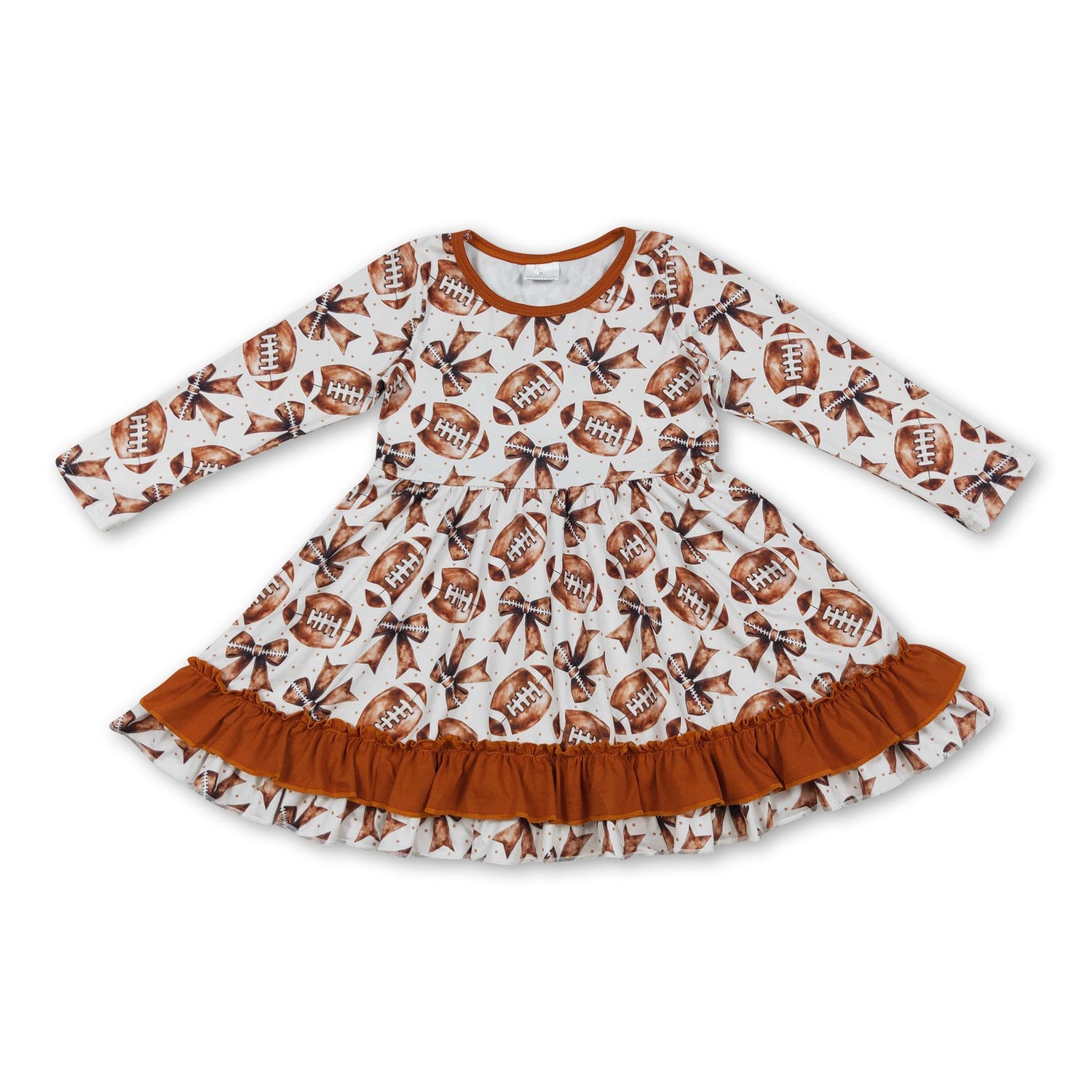 Long sleeves football bow ruffle kids girls dresses - 3-6M is backordered and will ship as soon as it is back in stock.