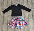 Long sleeves top music skirt kids girls clothing set