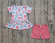 Red blue bow peplum stripe shorts girls 4th of july outfits