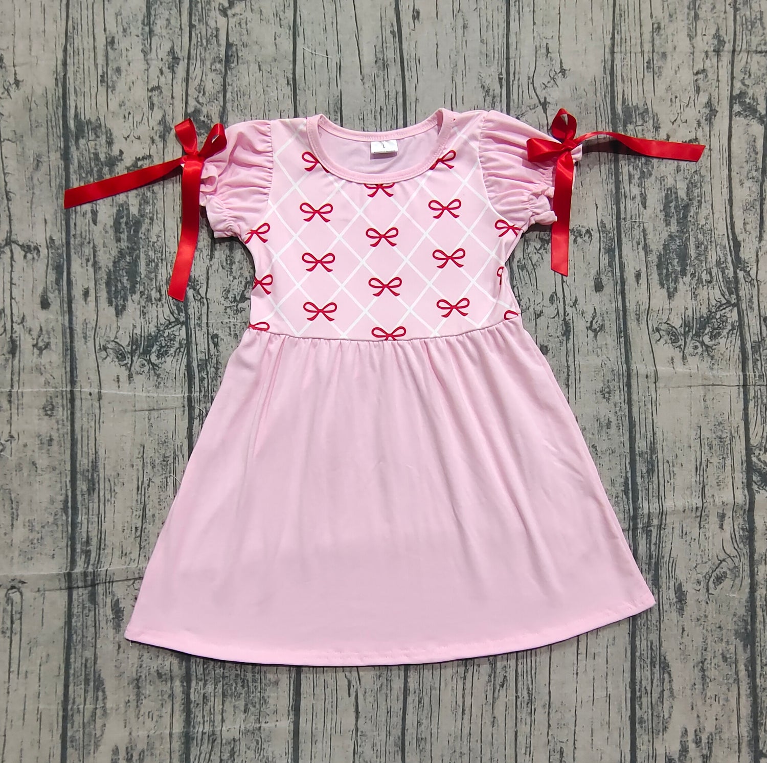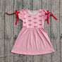 red bows girl ruffle sleeve pink dress