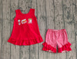 Red chicken fries top plaid shorts kids girls summer outfits