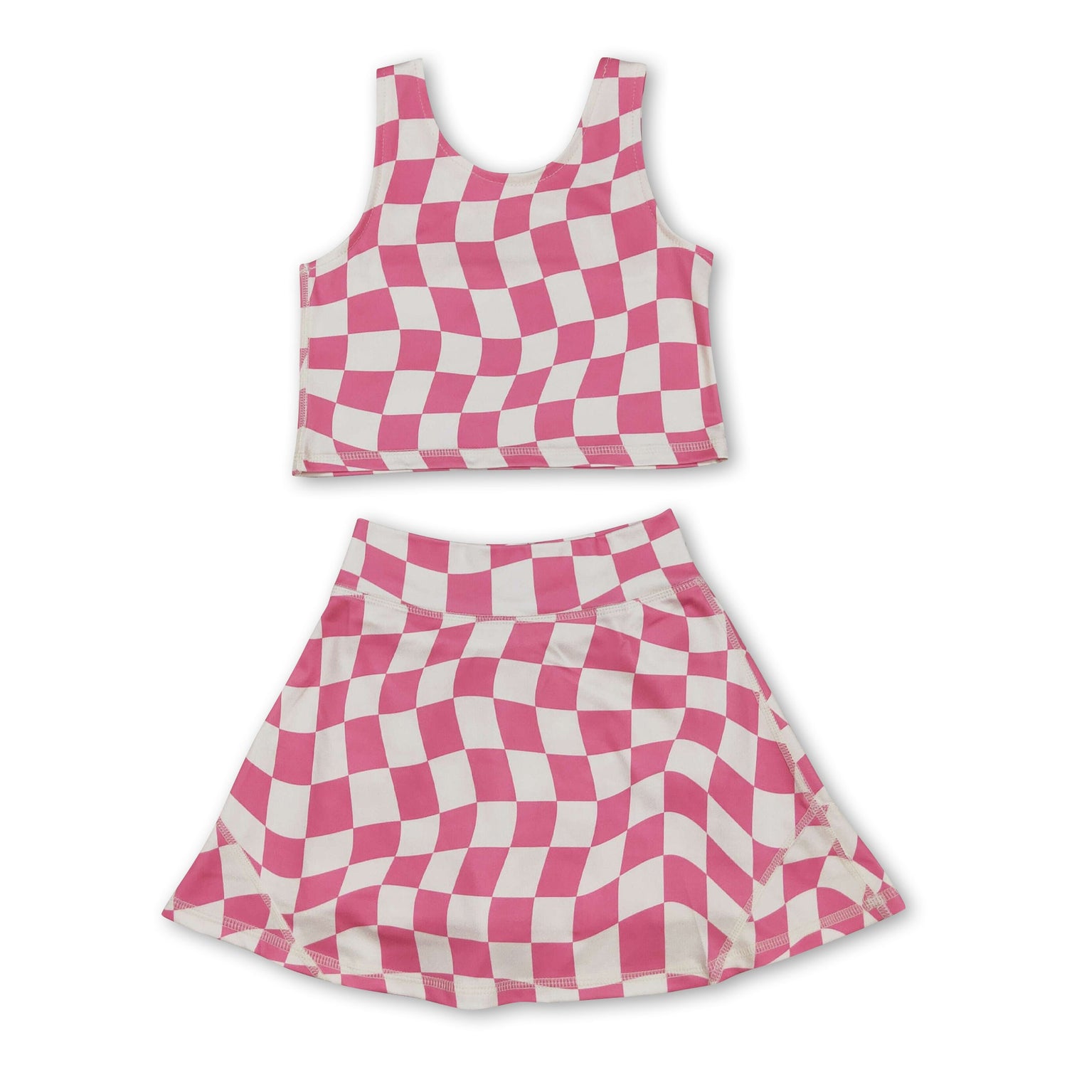 Sleeveless pink plaid top skirt kids girls active wear set - 12-18M is backordered and will ship as soon as it is back in stock.