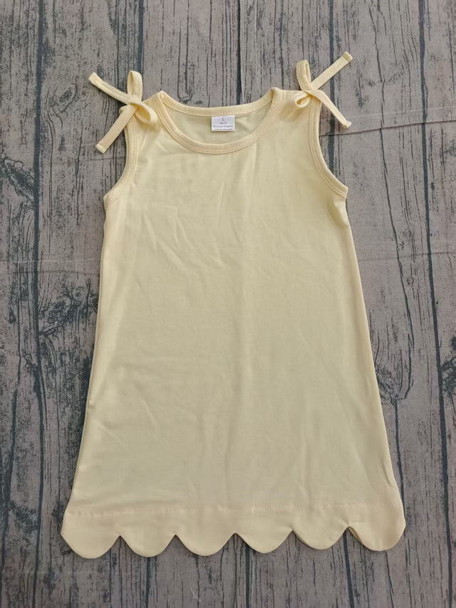 Sleeveless yellow cotton scallop girls summer dress