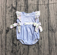 Thank heaven for little girls floral bow baby romper - 0-3M is backordered and will ship as soon as it is back in stock.