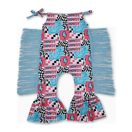 $1000Unit price /UnavailableHowdy turquoise thunder patchwork tassels girls romper