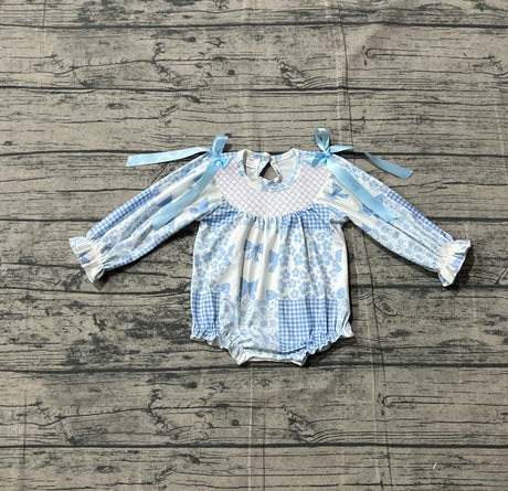 $1000Unit price /UnavailableLong sleeves light blue smocked bow floral baby girls romper
