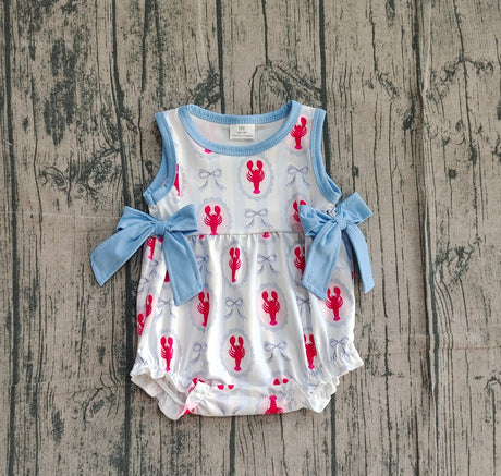 $1000Unit price /UnavailableSleeveless crawfish light blue bow baby girls romper