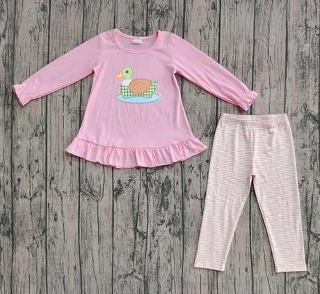 $1000Unit price /UnavailablePink long sleeves duck ruffle top stripe leggings girls clothes