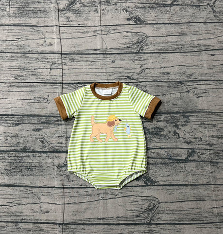 Short sleeves stripe dog fishing embroidery baby boy romper