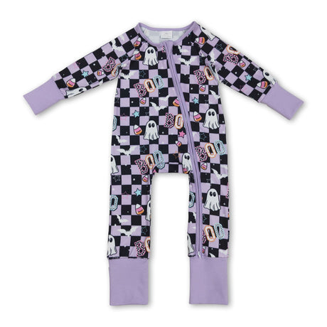$1000Unit price /UnavailableLavender plaid boo ghost girls Halloween zipper romper