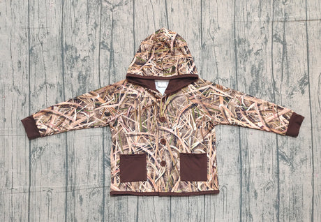 Dark brown pockets camo kids boys hooded jackets