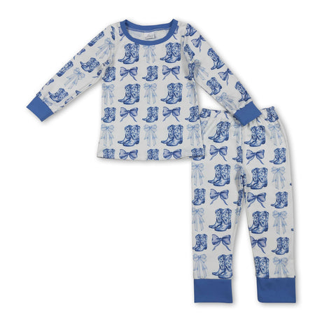 Long sleeves light blue bow boots western girls pajamas