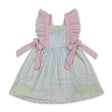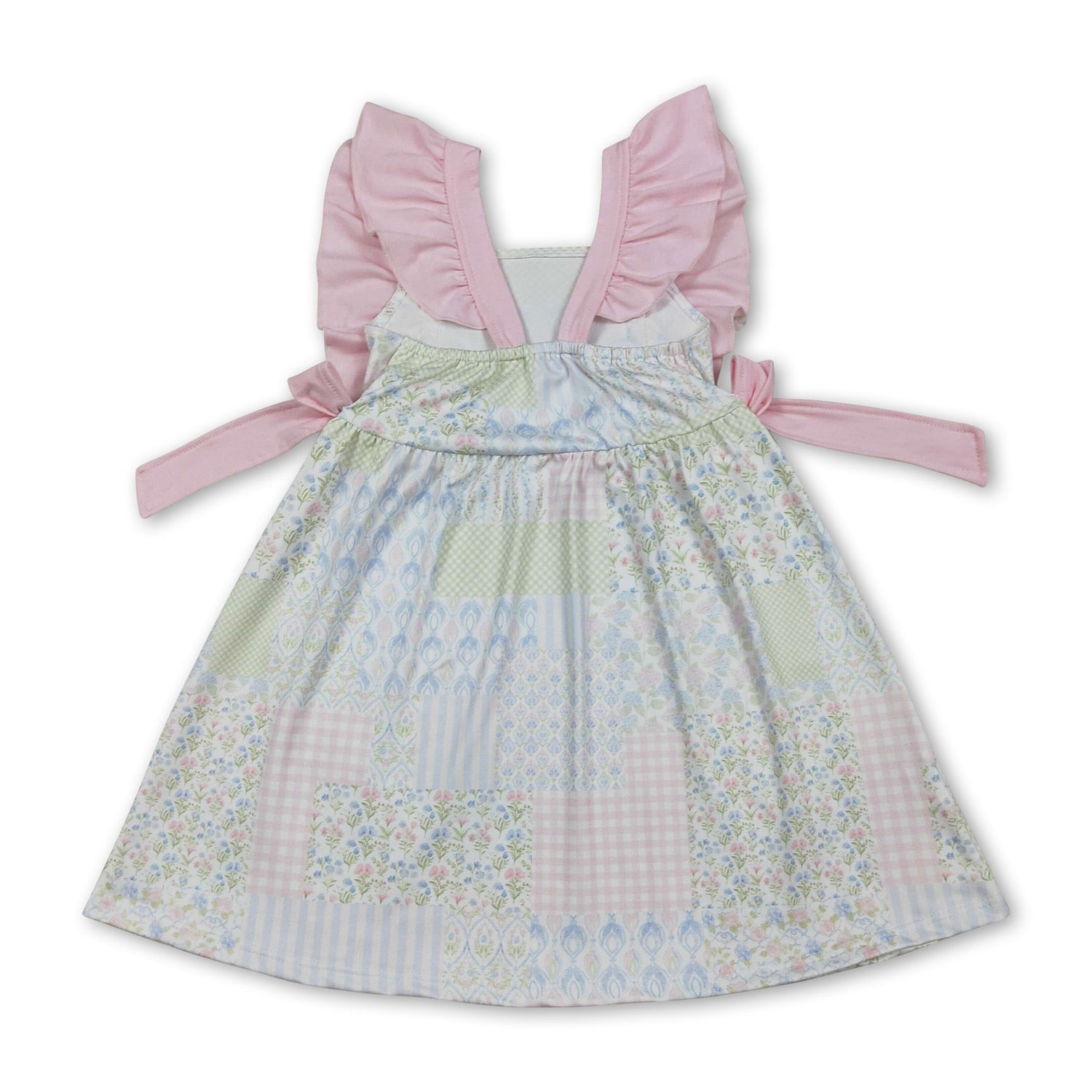 Pink flutter sleeves bow floral kids girls spring dress