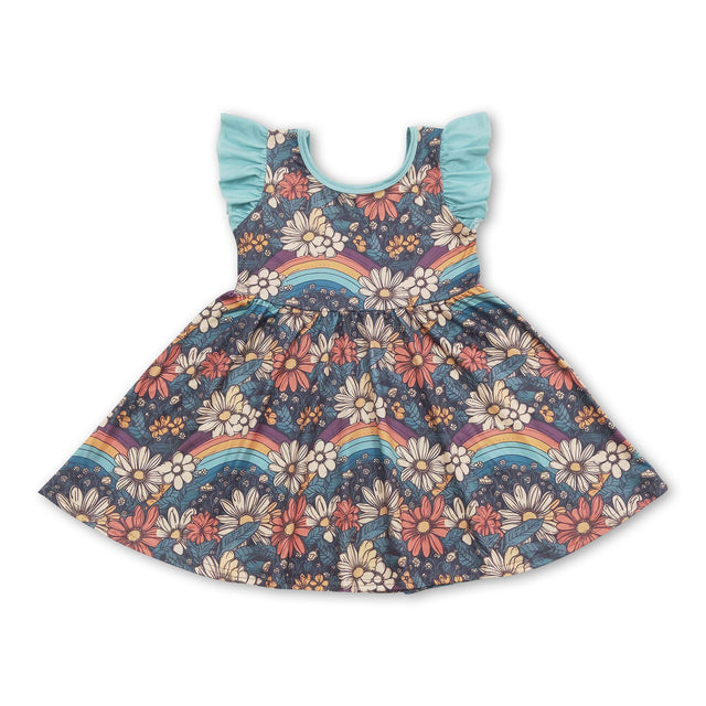 Rainbow flower flutter sleeves girls dresses - 3-6M is backordered and will ship as soon as it is back in stock.