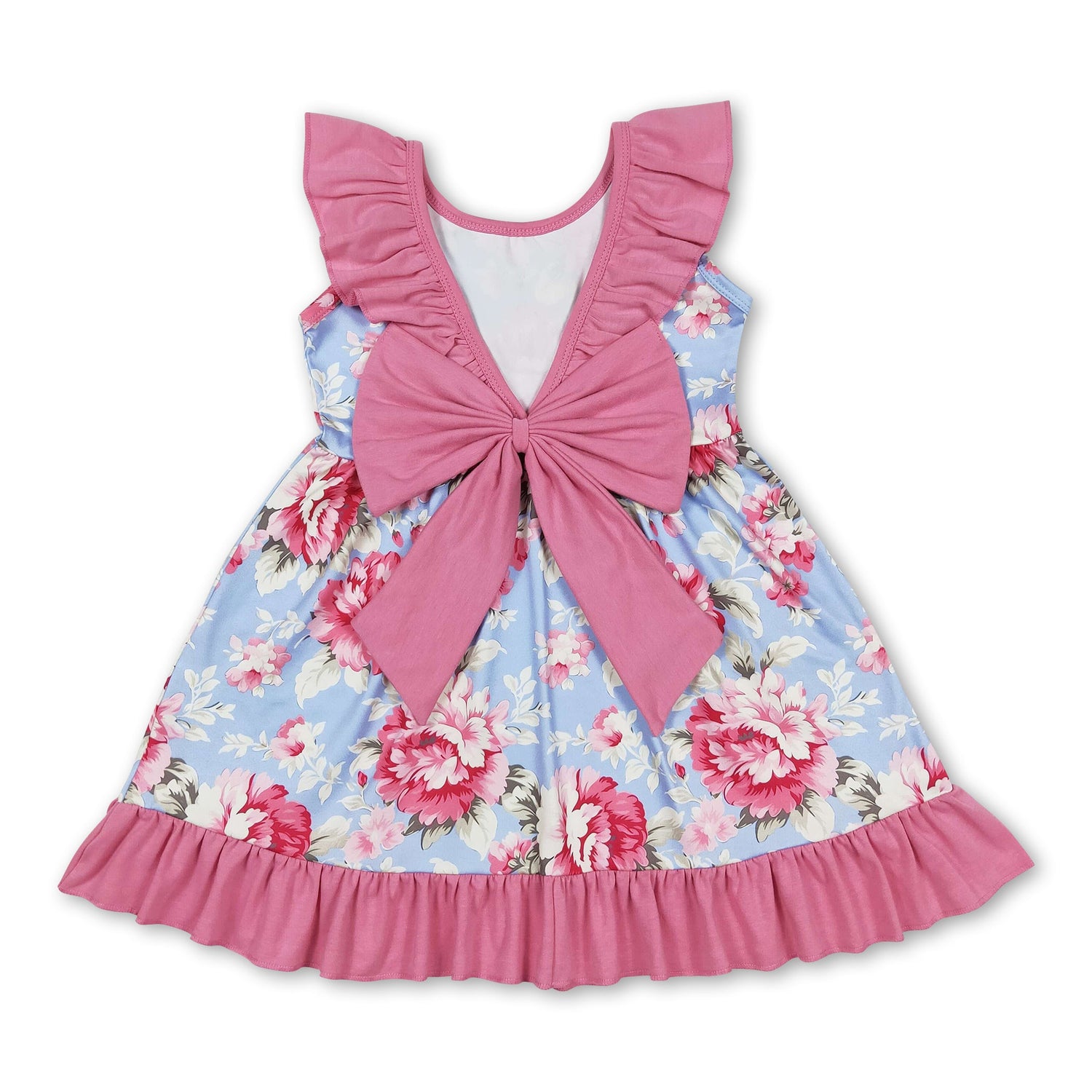 Ruffle bow backless floral baby girls dresses - 3-6M is backordered and will ship as soon as it is back in stock.