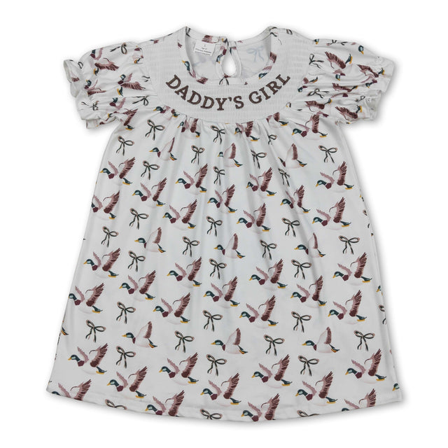 Short sleeves daddy's girl duck bow baby girls dresses