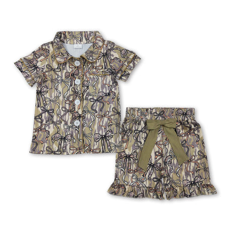 From $1250Unit price /UnavailableShort sleeves camo bow kids girls button down pajamas