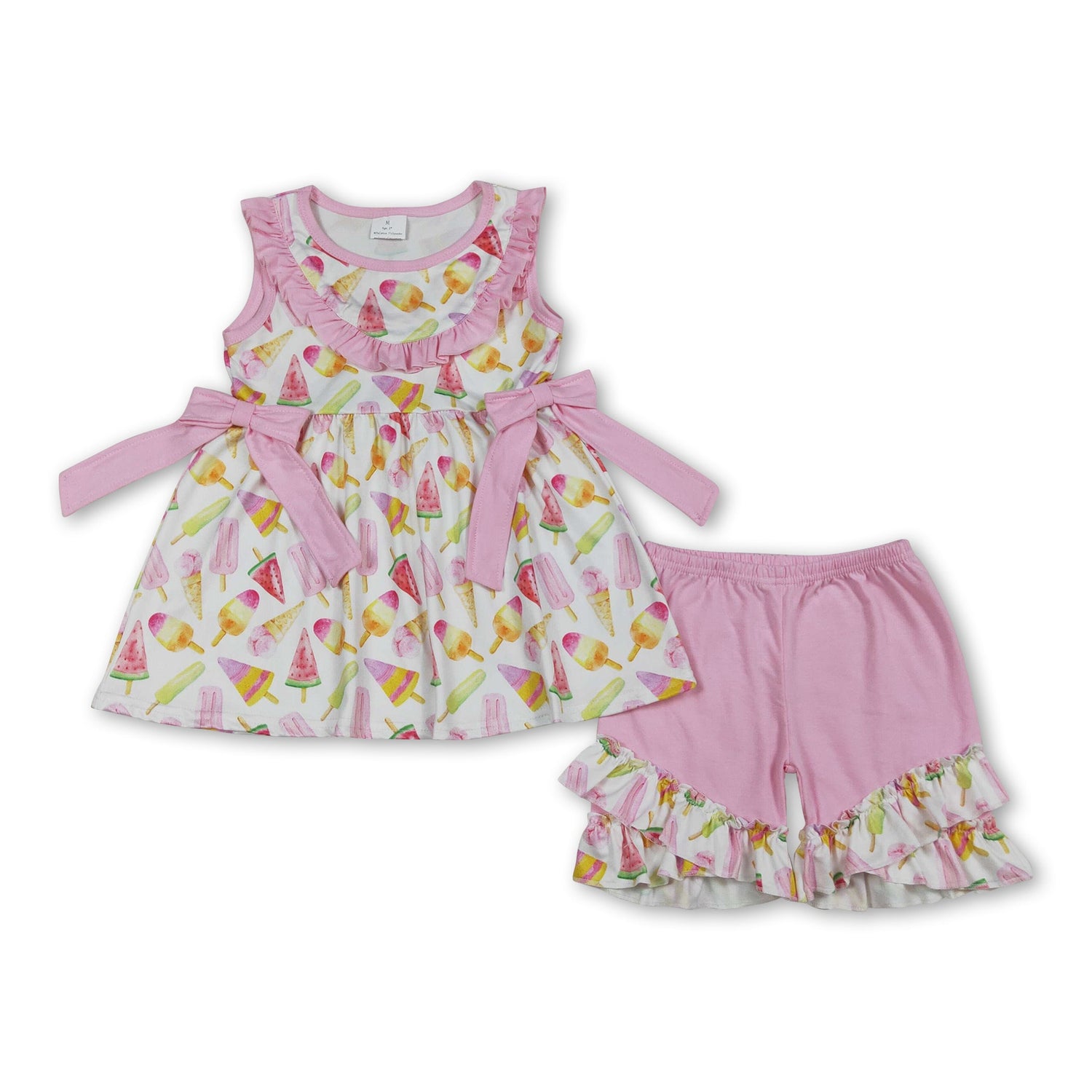 Sleeveless pink popsicle watermelon kids girls summer outfits