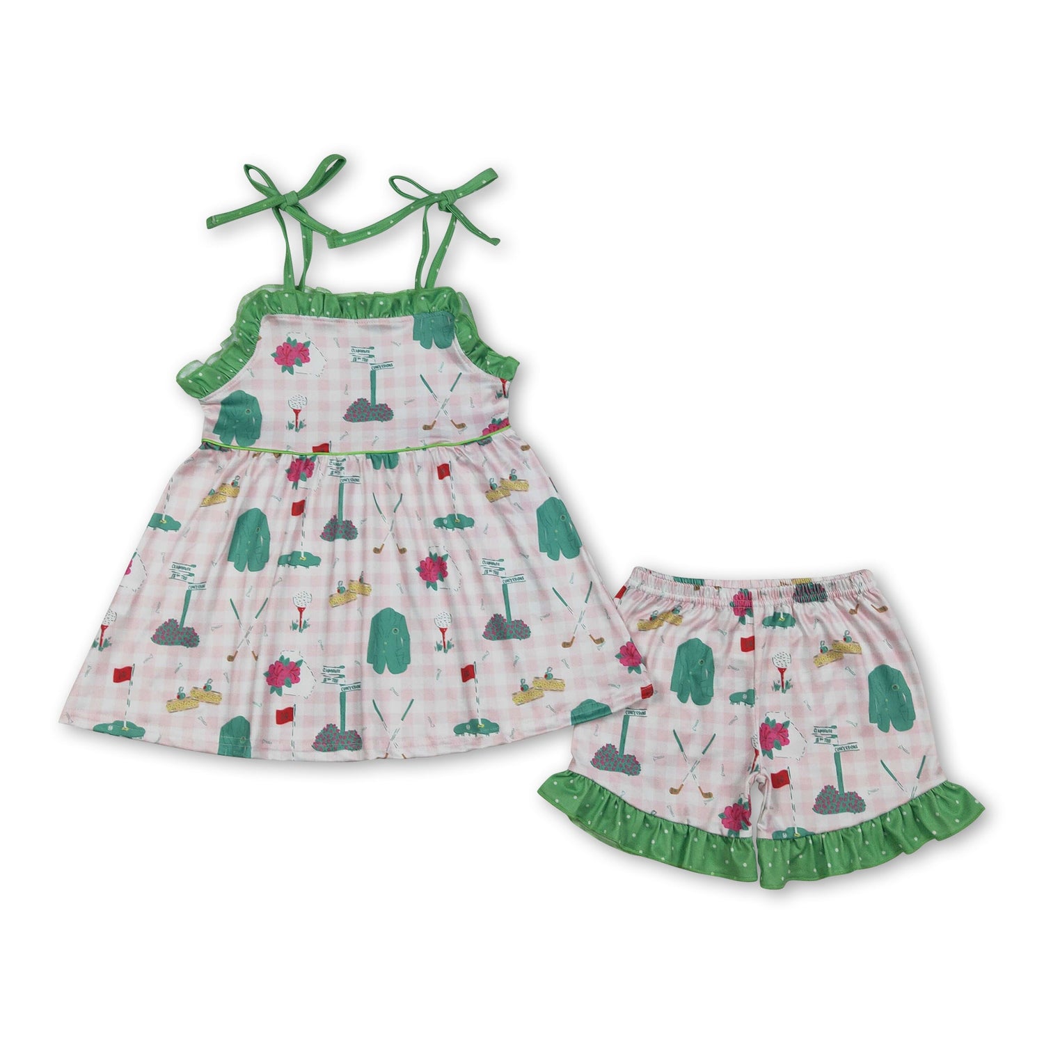 Straps pink plaid golf tunic shorts girls clothing set - 3-6M is backordered and will ship as soon as it is back in stock.