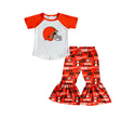 MOQ 3 pcs orange raglan top B bell bottom pants girls team outfits