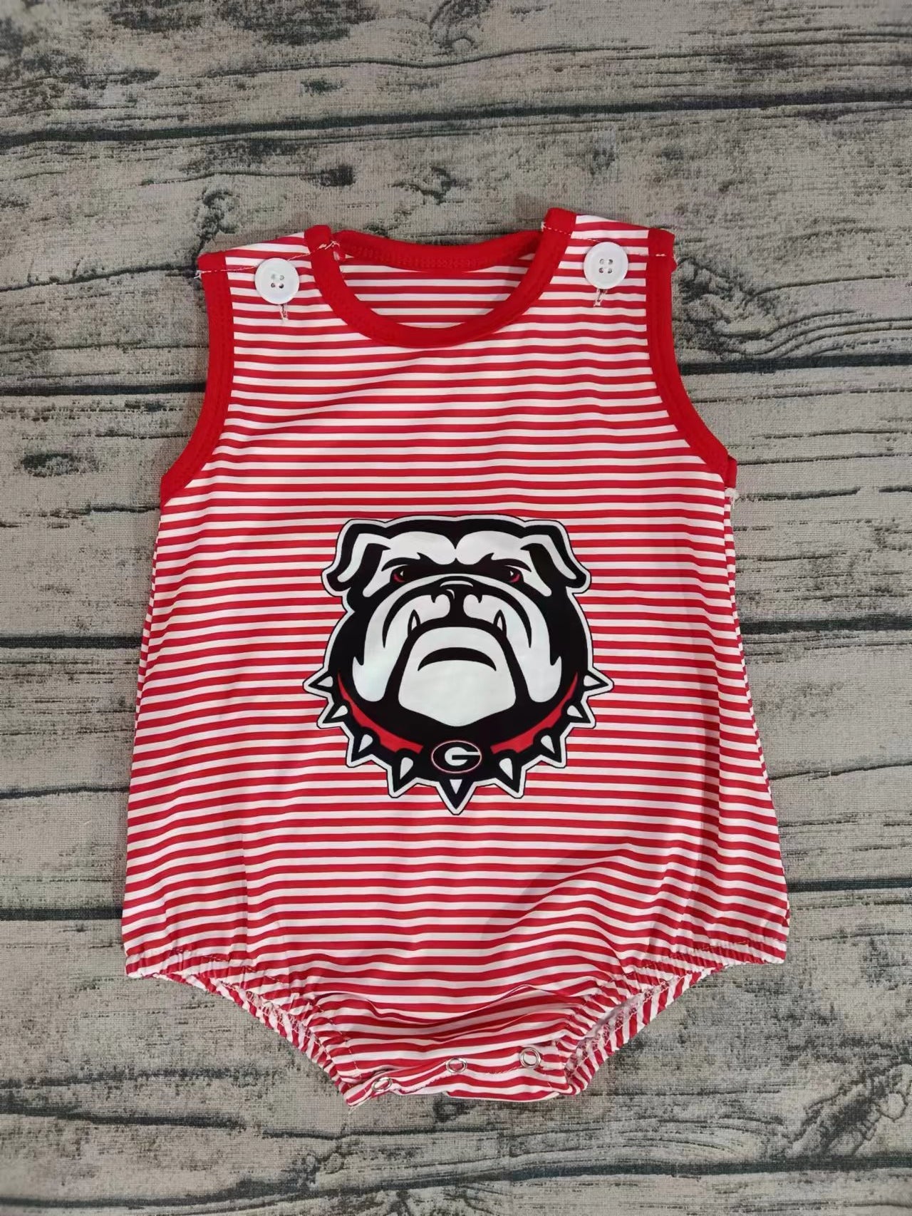 MOQ 3 pcs red stripe sleeveless G dog baby boy team romper - 0-3M is backordered and will ship as soon as it is back in stock.