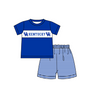 MOQ 5 pcs Blue short sleeves U K top stripe shorts boys team outfit