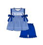 MOQ 5 pcs Blue stripe U K bow tunic ruffle shorts girls team outfit