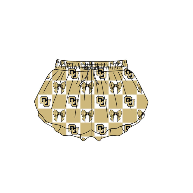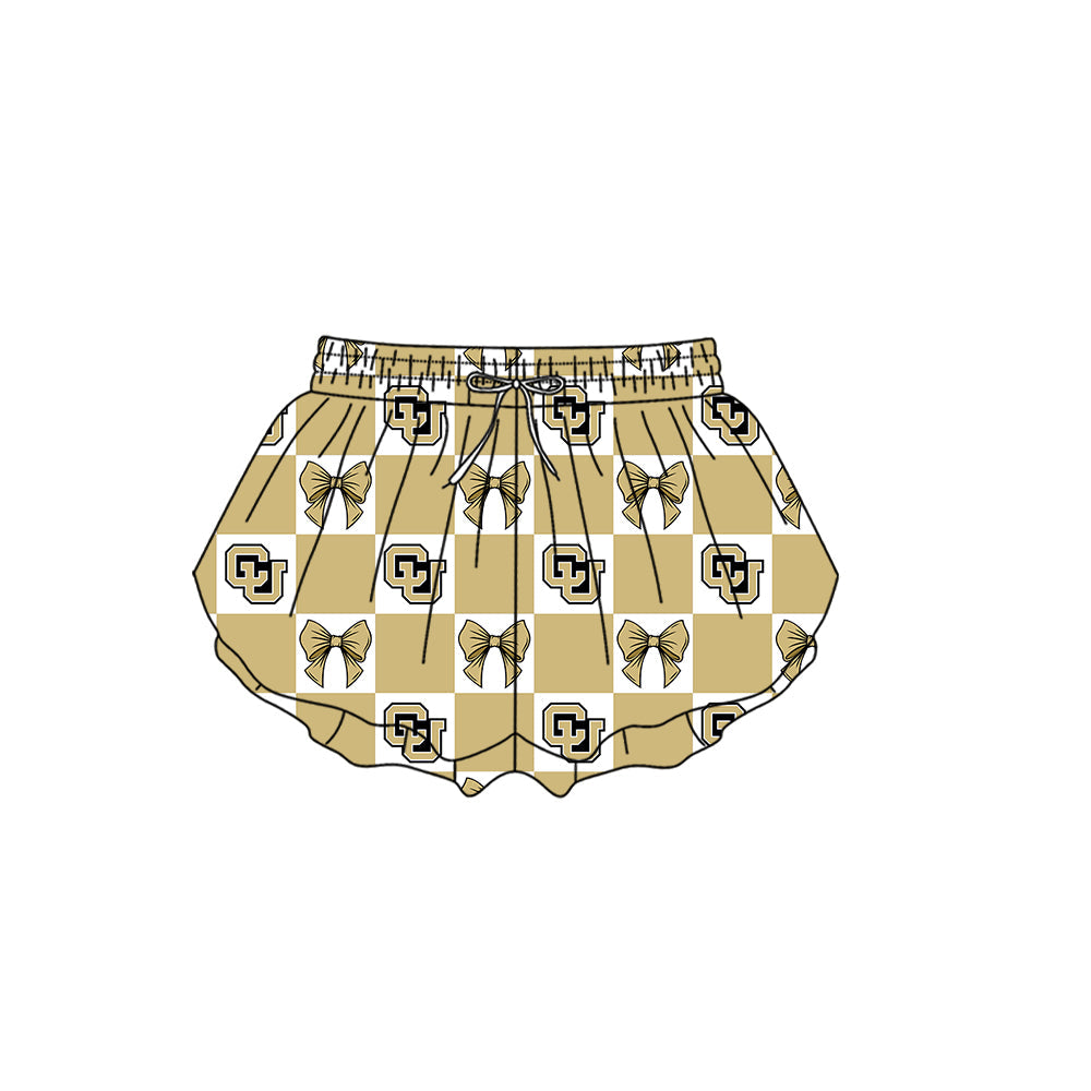 MOQ 5 pcs Plaid bow ginger CU kids girls team active summer shorts