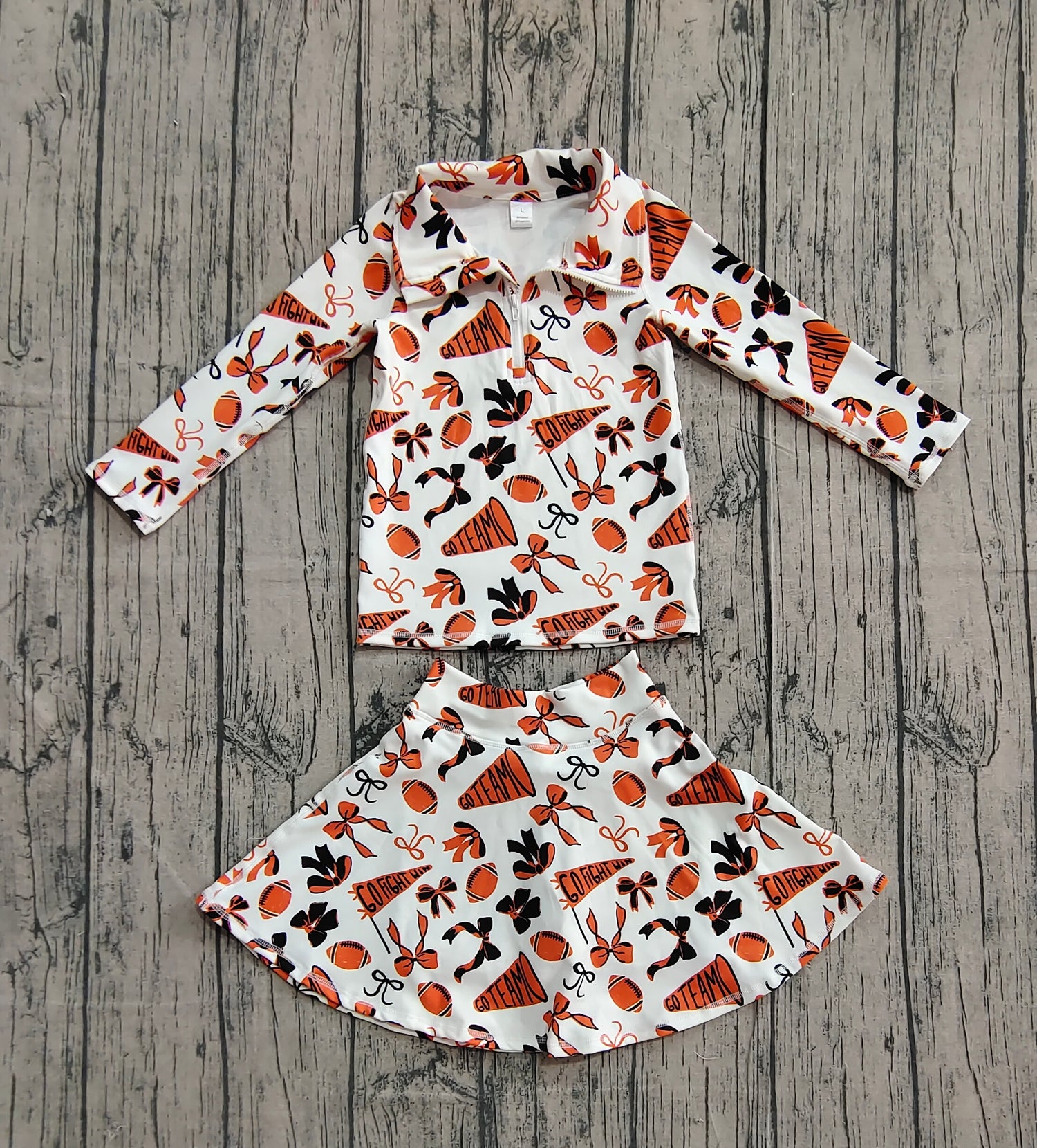 Orange bow football top skirt kids girls team activewear set - 3-6M is backordered and will ship as soon as it is back in stock.