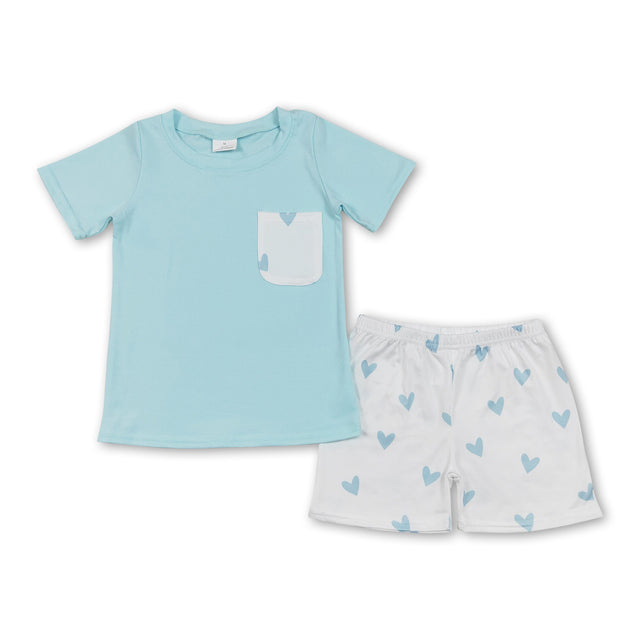Heart pocket aqua top shorts kids boys valentine's clothes