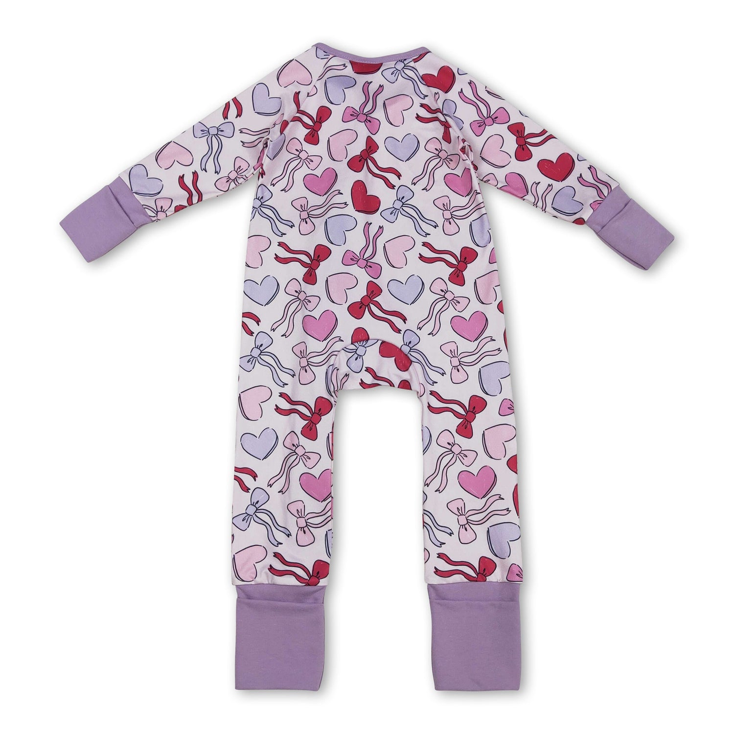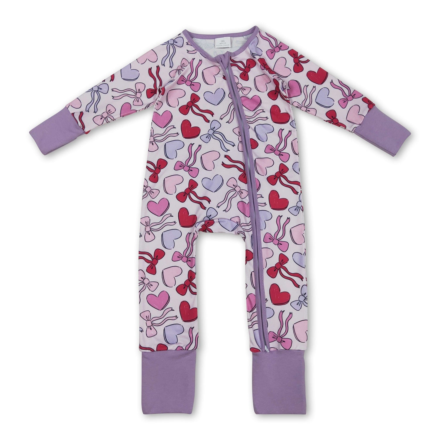 Long sleeves lavender heart bow baby Valentine's romper - 0-3M is backordered and will ship as soon as it is back in stock.