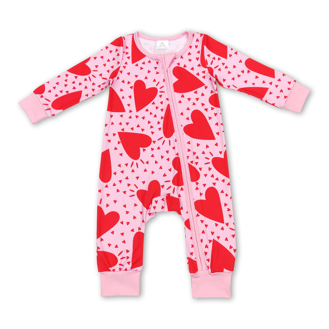 Pink heart long sleeves baby girls valentine's romper