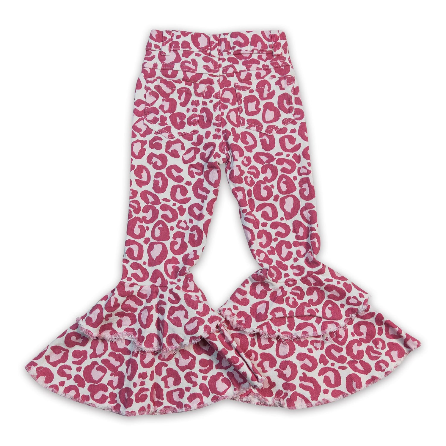 Pink leopard double ruffle denim pants girls valentine's jeans