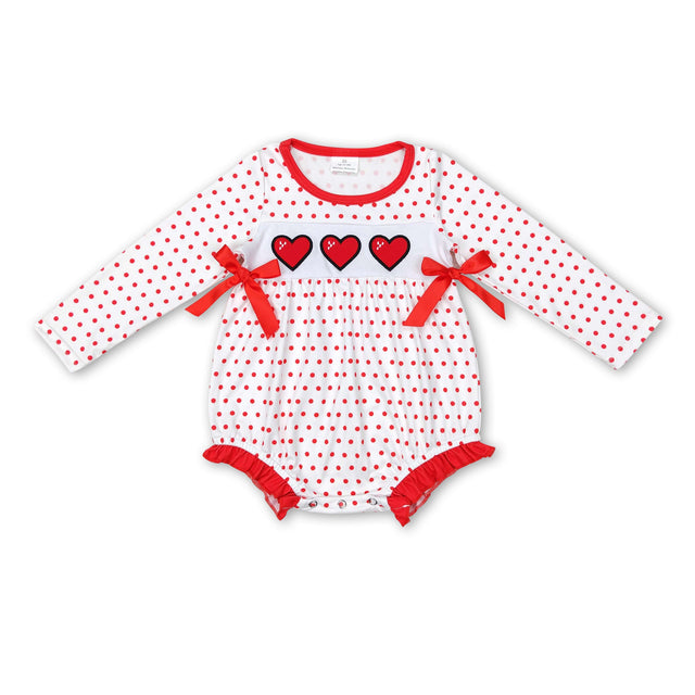 Red heart polka dots baby girls valentine's romper - 0-3M is backordered and will ship as soon as it is back in stock.