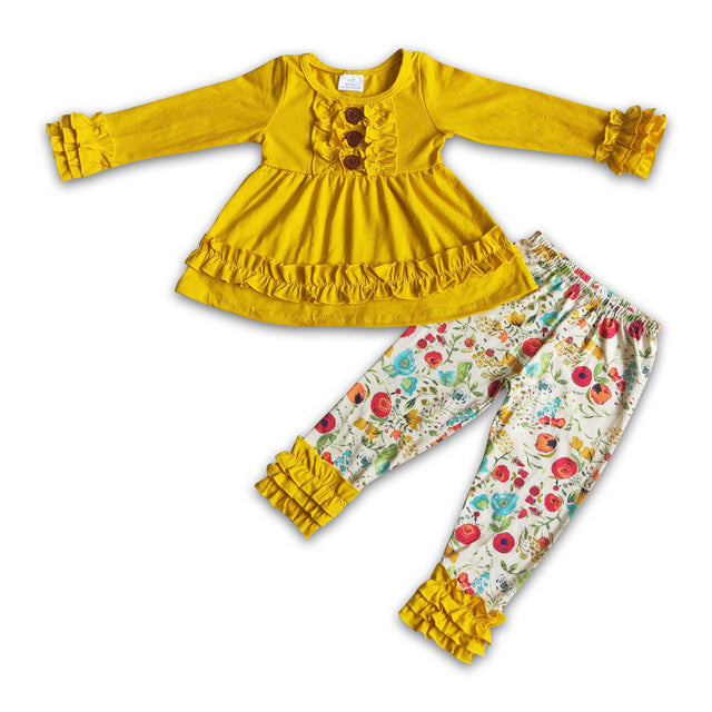 Yellow cotton tunic floral leggings girls fall clothing