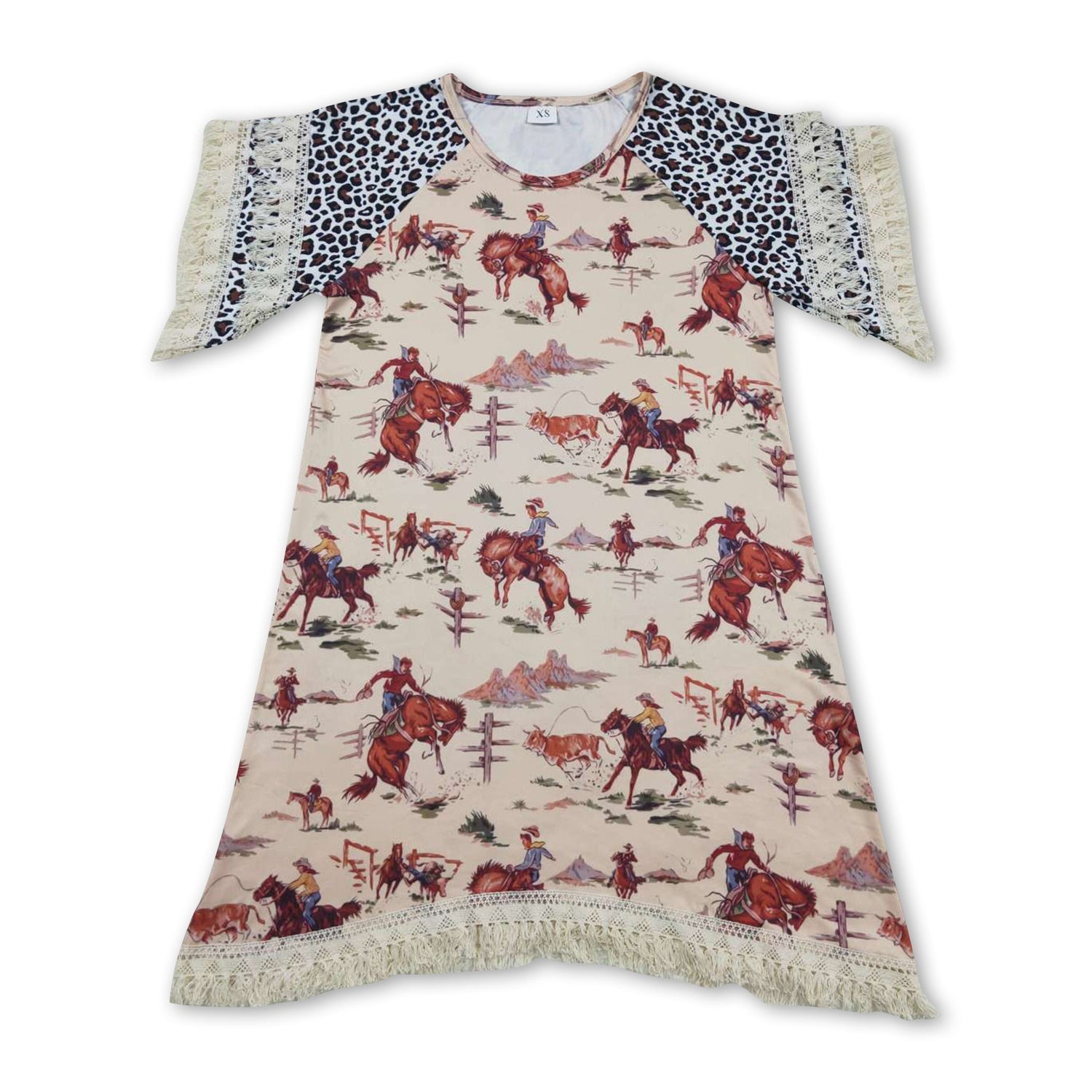Leopard horse rodeo khaki short sleeves adult women shirt - XS is backordered and will ship as soon as it is back in stock.