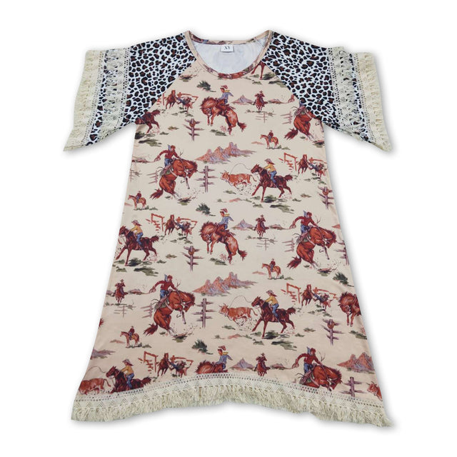 Leopard horse rodeo khaki short sleeves adult women shirt