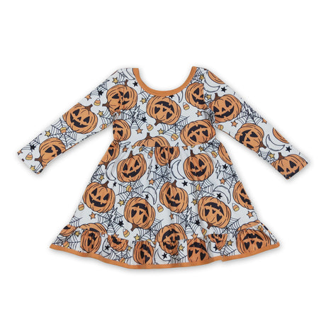 Long sleeves spider pumpkin kids girls Halloween dresses