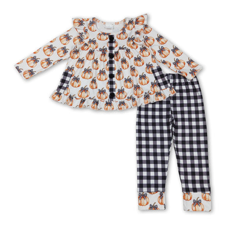 Long sleeves black plaid bow pumpkin girls fall clothes
