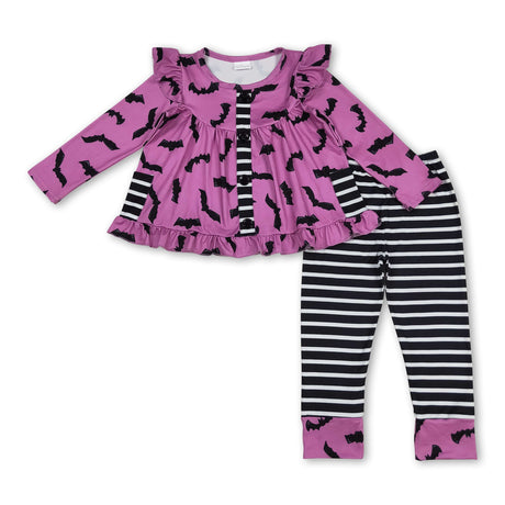 Bat pockets tunic stripe leggings girls Halloween clothes